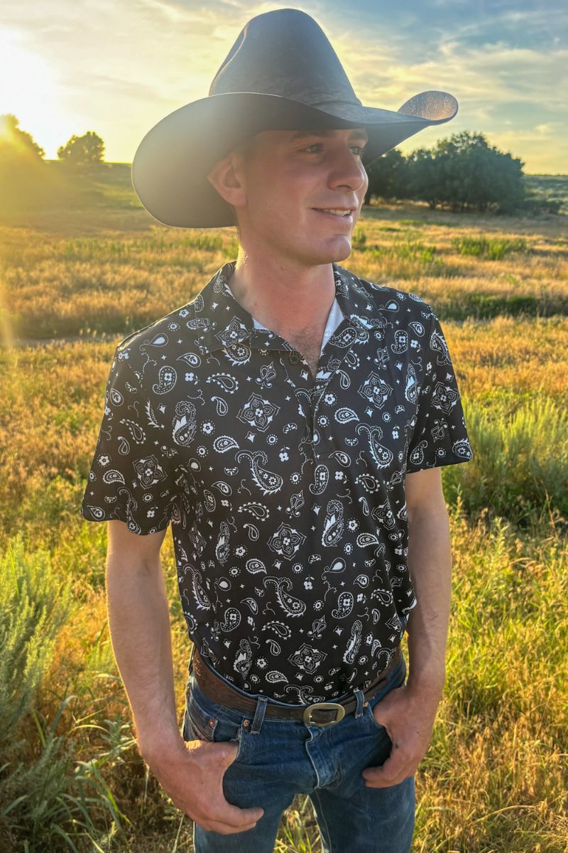 Rock that classic country vibe with the Bandana Country Mens Polo—where bold style meets laid-back comfort. This sharp black polo features eye-catching bandana detailing that brings personality to your everyday wardrobe. Perfect for casual outings, weekend hangouts, or whenever you want to show off your country spirit without trying too hard. Slip it on and let your style do the talking.