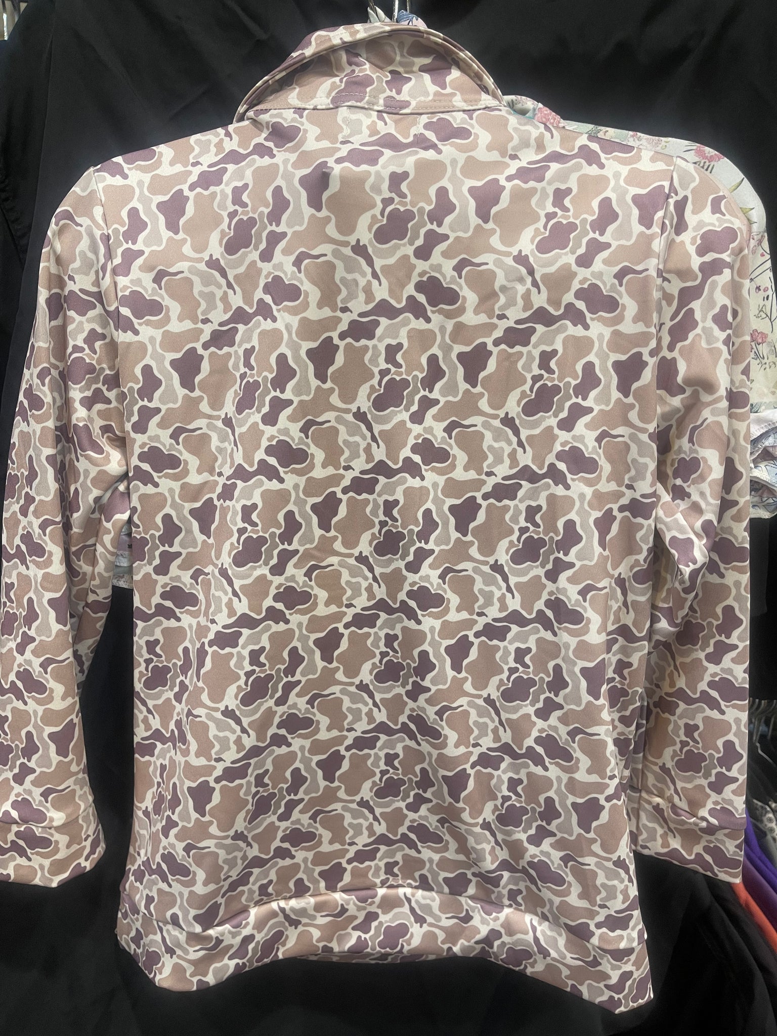 Step into the wild side with our Clover Cottage Camo Quarter Zip! This brown-toned camo long sleeve brings that rugged outdoor vibe with a cozy twist. The quarter zip design makes it easy to adjust your comfort level, whether you're heading out on an adventure or just vibing around town. Perfect for layering or wearing solo, this piece blends style with practicality. Embrace your inner explorer and make camo your signature move!