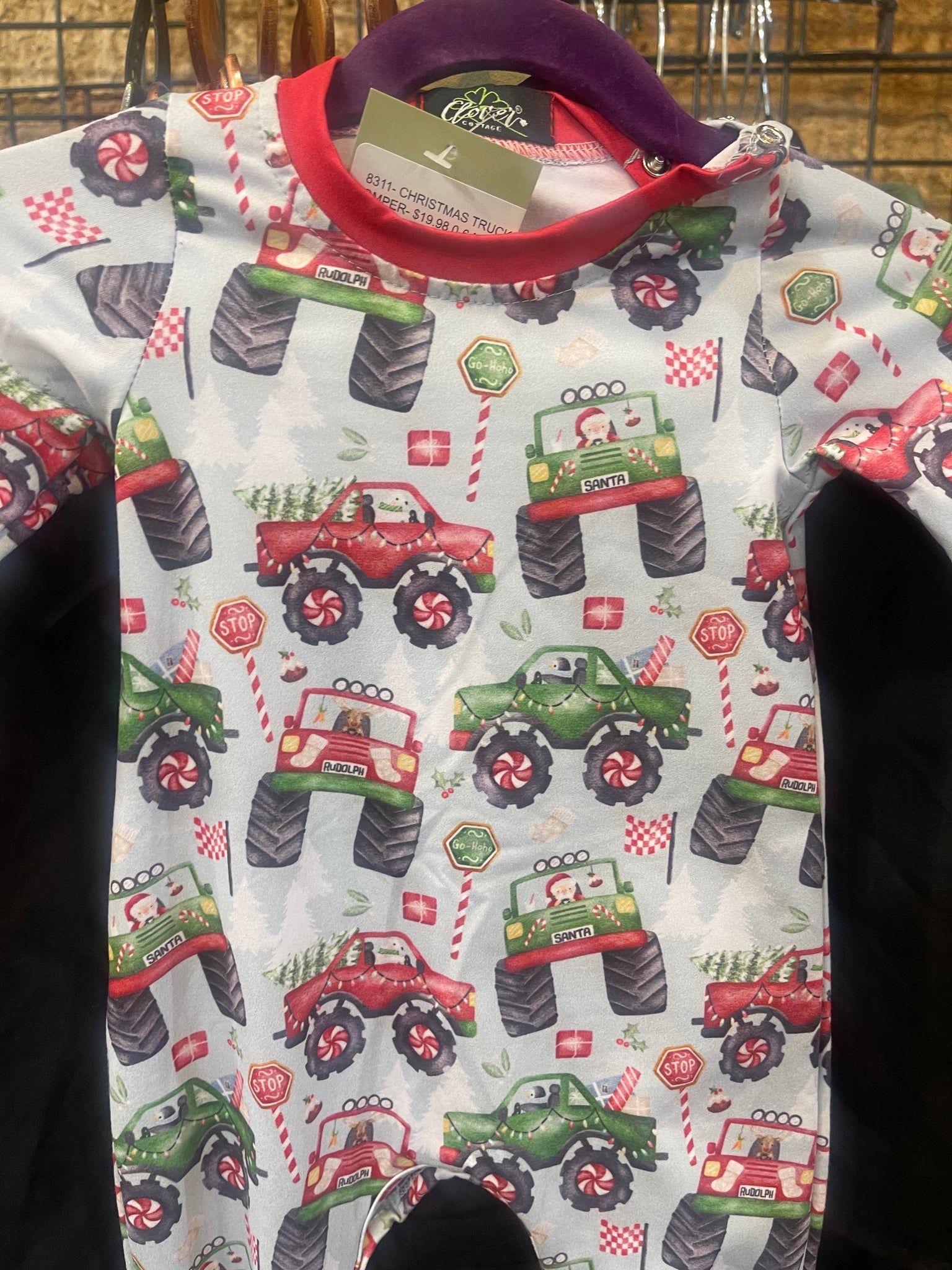 Little ones will love climbing into this festive Christmas Truck Romper! Featuring a cheerful red and green design with Santa and adorable polar bears at the wheel, this playful one-piece is perfect for holiday celebrations and cozy winter days. The charming print captures all the magic of the season, making it an instant favorite for Christmas photos and family gatherings. Soft, comfortable, and bursting with seasonal cheer!