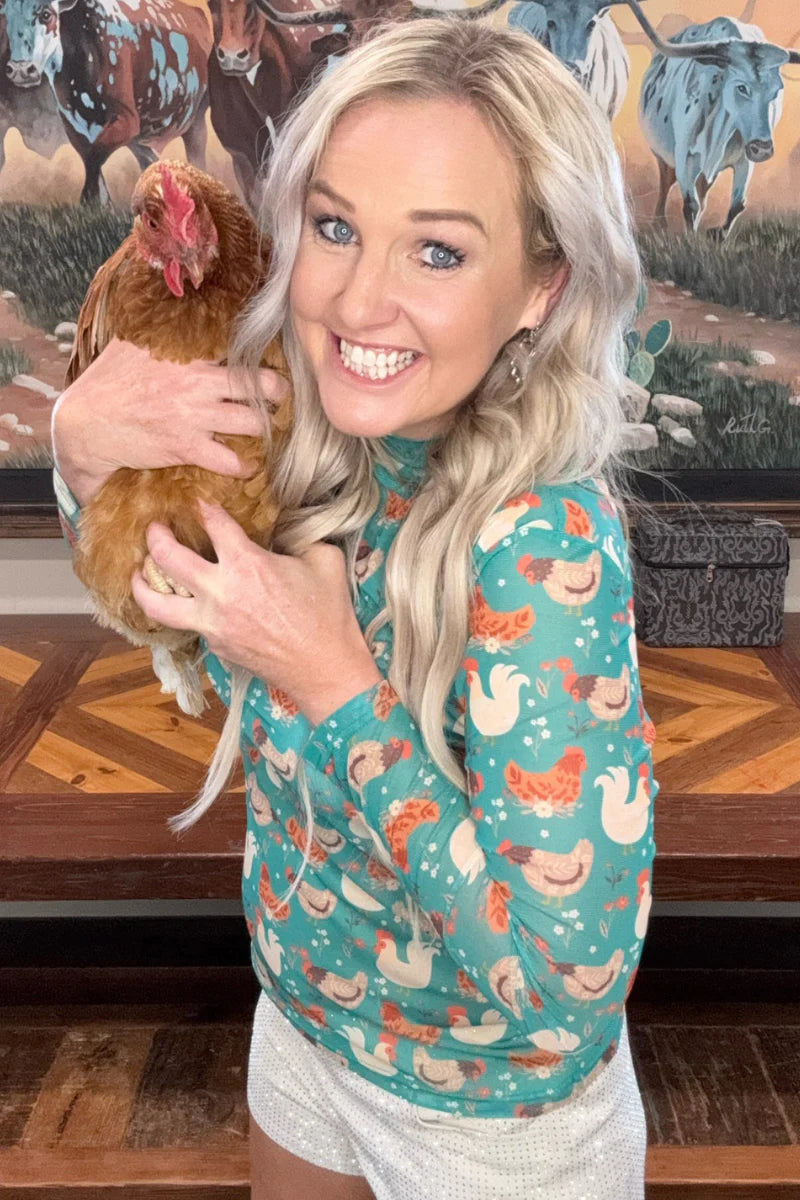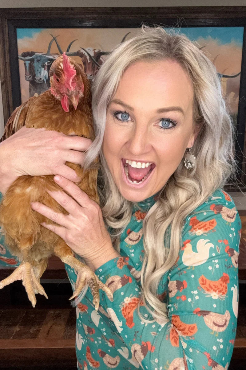 Elevate your wardrobe with Sterling Kreek's Fly the Coop Mesh Top, a sophisticated piece that celebrates poultry-inspired style. This expertly crafted mesh top combines breathable fabric with contemporary design, perfect for those who appreciate bold, whimsical fashion statements. The lightweight construction ensures comfort throughout the day, while the quality mesh material provides an elegant, textured aesthetic. Ideal for layering or wearing solo, this top seamlessly transitions from casual outings to more refined occasions. Express your love for all things chicken with confidence and flair.