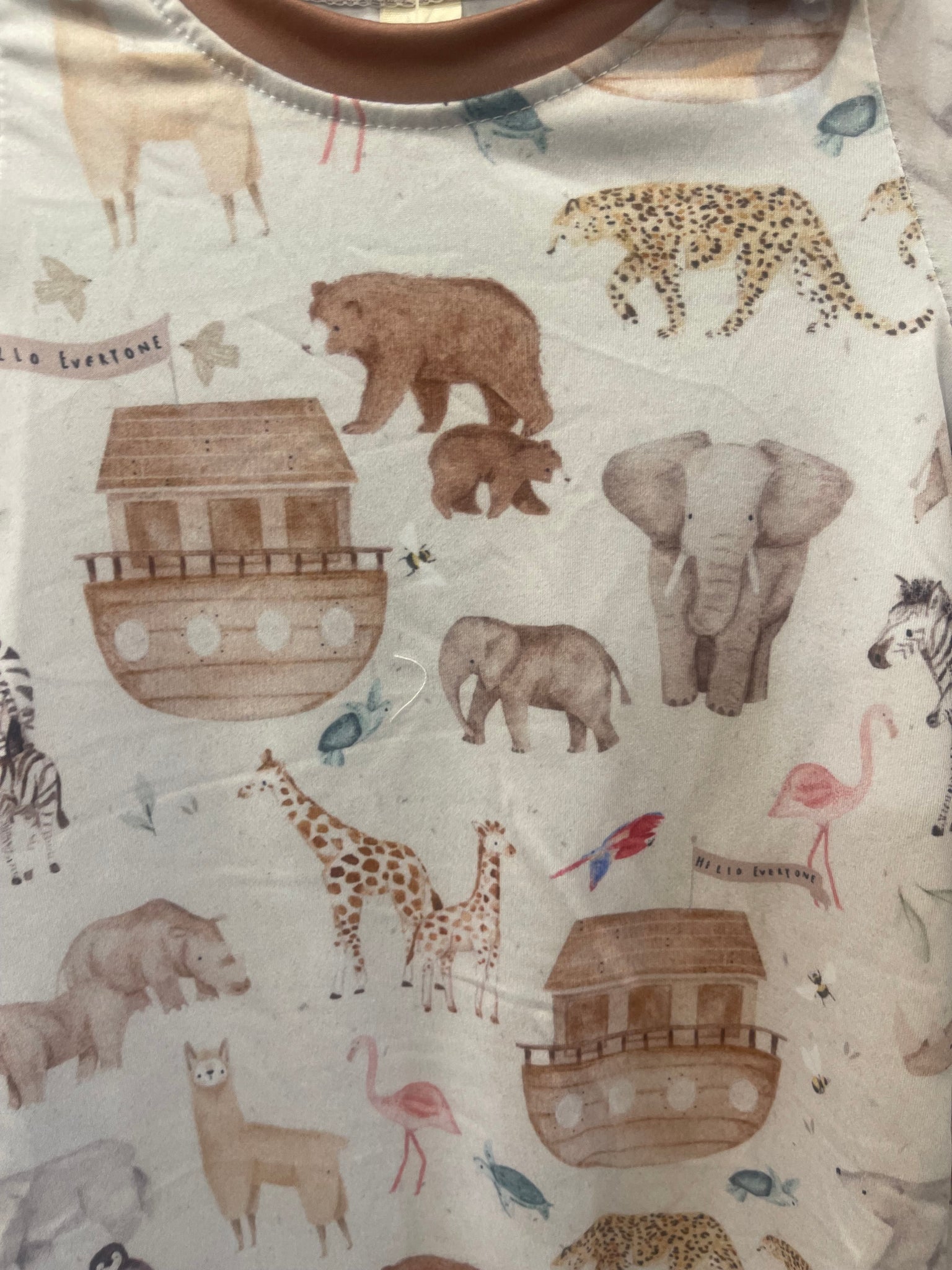 Sail into adorable adventures with this charming Noah Romper! Featuring a delightful Noah's Ark design complete with all the animals, this playful piece brings storybook magic to your little one's wardrobe. Perfect for playdates, family gatherings, or everyday fun, it's a conversation starter that celebrates classic tales with modern style. Comfort meets whimsy in this must-have romper that'll have everyone smiling!
