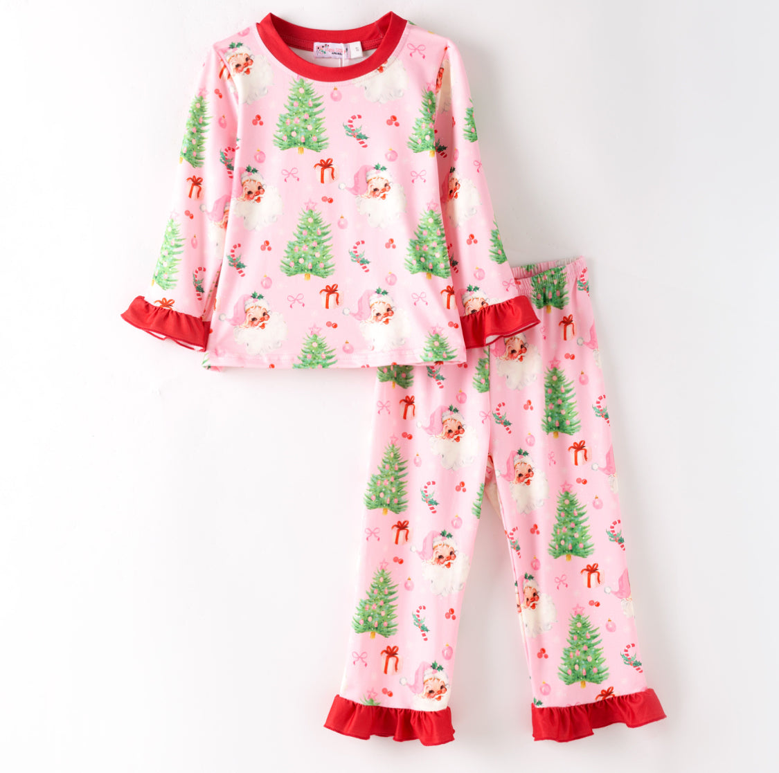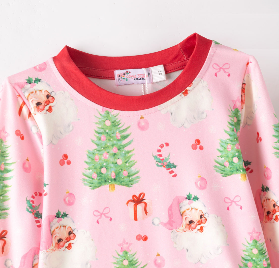 Wrap yourself in holiday cheer with this adorable pink lounge wear featuring festive Clover Cottage designs. Cozy up with cheerful prints of Santa, presents, twinkling Christmas trees, and candy canes—perfect for lazy mornings, movie nights, or spreading seasonal joy around the house. Soft, comfortable, and undeniably cute, this piece brings playful holiday spirit to your everyday relaxation. Ideal for anyone who loves Christmas with a fun, feminine twist!